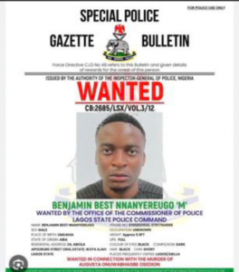 Nnanyereugo Best the alleged killer of his girlfriend who was declared wanted by the police for killing his girlfriend, Augusta Osedion, a student of Lead City University, has been arrested in Sierra Leone .