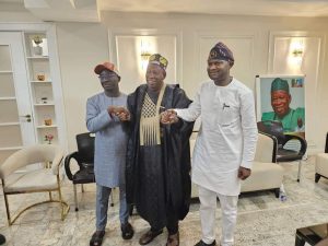 President Bola Ahmed Tinubu receives Edo APC Stakeholders and Members of the National Working Committee led by H.E Dr Abdullahi Umar Ganduje at the State House for the Official Presentation of the APC Flag to the Governorship Candidate, Senator Monday Okpebholo and deputy Governorship Candidate of the APC, Honourable Dennis Idahosa in Edo State.