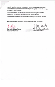 According to the letter, which was addressed to the Chairman of the Independent National Electoral Commission ( INEC) in Abuja and signed by the National Chairman and National Secretary of the Party, Bar Julius Abure and Alhaji Umar Farouk Ibrahim respectively.