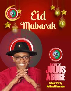 The National Chairman of the Labour Party, Bar Julius Abure wishes all Muslim brothers and sisters a joyous sallar celebrations.
