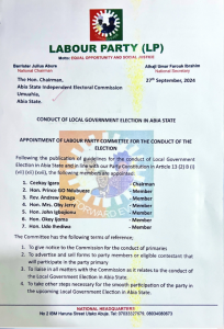 The appointment letter, which was made available to Trustbase news has Hon Ceekay Igara, the National Vice Chairman South East of the party as the Chairman and six other party members drawn from the Abia State Executive Council of the Party. The letter which was duly signed by the National Chairman and National Secretary of the Party, Bar Julius Abure and Alhaji Umar Farouk Ibrahim respectively.