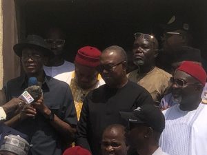 The Presidential Candidate of the Labour Party in the 2023 General Election, Mr. Peter Obi, on Tuesday joined crowd of Party Faithful in the Federal Capital Territory to pay solidarity visit to the party leadership at the National Headquarters today.