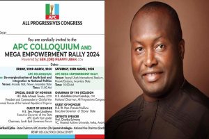 The events which is tagged 2024 Colloquium and Mega Empowerment Rally by APC and Ubah will take place in Sen Uba’s home town Nnewi.