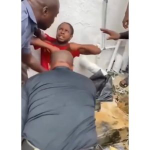 In a now-viral video, the suspect is seen begging for mercy, claiming he acted alone. Though the bank has yet to issue an official statement, several clips show the man being detained & handled roughly by security officials at the scene