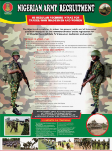 The Nigerian Army has Commenced online Registration for its 86th Regular Recruits Intake for trades/non trades men and women.