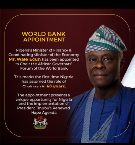 Mr. Wale Edun, the Nigeria’s Minister of Finance & the Coordinating Minister of the Economy has been appointed to Chair the African Governors’ Forum of the World Bank.
